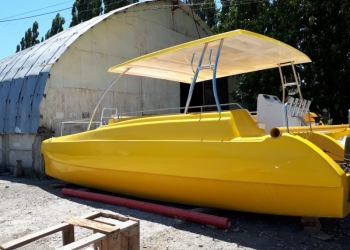 Длина катамарана 8 метра Ширина — 4,5 метра Высота — 1,3 м. Вес от 1850 кг. Грузоподъёмность более 3000кг.