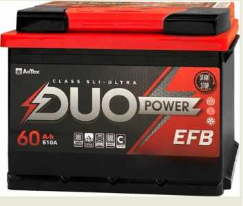 Автомобильный аккумулятор DUO EFB 60 Ач 610 А Обратная полярность и прямая полярность в наличии Размер (Д×Ш×В) 242...