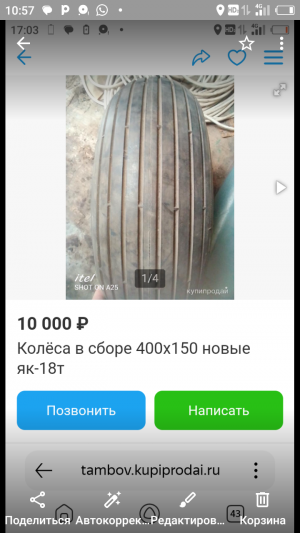 Вид товара: Колеса; Диаметр: 10;