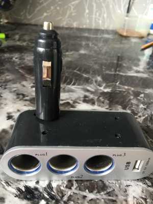 Разветвитель в прикуриватель (3 гнезда + USB, предохранитель 5А, черный)