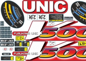 Комплект наклеек на стрелу кран-манипулятора UNIC URV500 Состав комплекта: Наклейки с наименованием производителя - 2 шт...