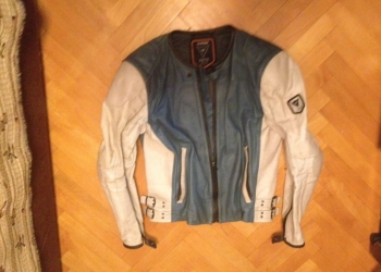 Мотокуртка защитная мужская кожаная Dainese 48 размера бело-голубая в отличном состоянии