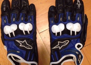 Мотоперчатки кожаные мужские бело-сине-черные медиум 9 в отличном состоянии