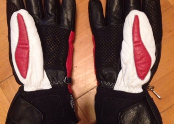 Мотоперчатки кожаные мужские утепленные красно-бело-черные медиум 8 в отличном состоянии