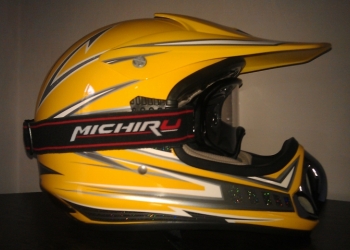 Мото шлем фирмы СAN и очки , ни разу не использовались, из частной коллекции. Шлем ярко желтого цвета, размер 60-61.