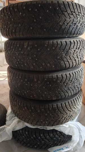 Продам зимние шипованные колёса комплект, шины в отличном состоянии, но нужно вкладывать камеры, продавились шипы.