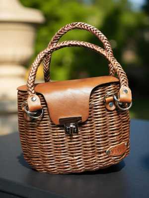 Женская сумочка из лозы и натуральной кожи коричневого цвета. Размеры: высота - 16 см; ширина - 22 см; глубина -12 см.