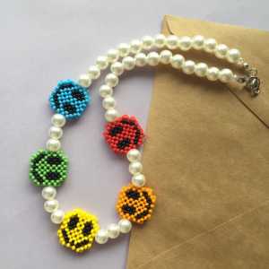 Ожирелье из бисера и бусин. Цвет и количество смайликов на ваш выбор. Диаметр бусин 8мм или 12мм тоже на ваш выбор.