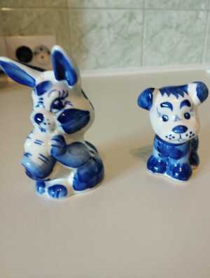 2 фарфоровые фигурки, Гжель в отличном состоянии