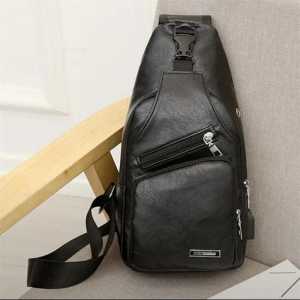 Мужская сумка через плечо с USB портом. Искусственная кожа. Цвет черный. При покупке через телеграмм канал скидка 10%