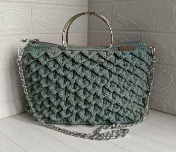 Сумка вязанная из полиэстера, узор "рыбья чешуя" , милый интересный аксессуар. Можно стирать , не выгорает, лёгкая.