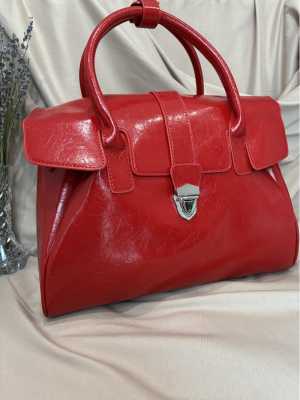 Сумка женская натуральная кожа. Цвет: красный. Размеры: ширина 33 см, высота 28 см. Внутри 2 отделения, 2 кармана.
