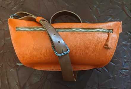 Бананка из натуральной кожи, полностью ручная работа, стиль унисекс. Плотный ремень из ременной кожи. Вместительная.