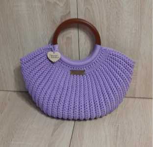 Не в наличии, возможен повтор. Сумочка сиреневого цвета вязаная ручной работы. Размеры: Ширина ~ 33 см.