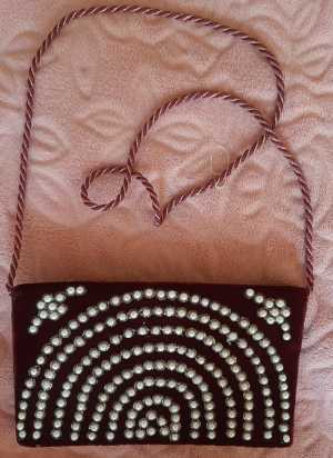 Сумочка клатч вечерний,ткань велюр украшен жемчугом на длинной ручке