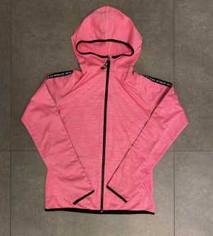 Спортивная кофта H&M размера 146-152. Состояние хорошее. Есть небольшой порез спереди возле молнии (видно на фото).
