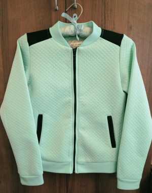 Спортивный костюм, треко чёрные внизу за резинке. Ковта без замка, горловины круглая, цвет светло зелёный.