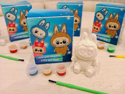 Состав набора: 1) гипсовая 3Д фигурка Лабубу ~8 см, раскрасить такую фигурку можно со всех сторон 2) 3 цвета красок гуашь...