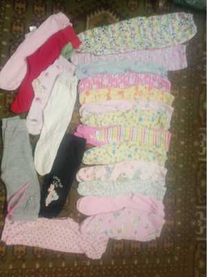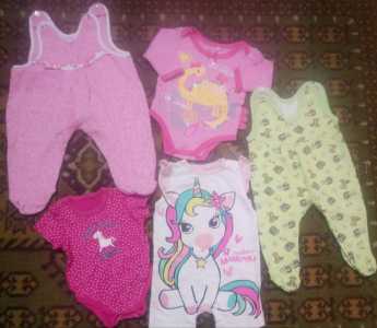 Комбинезончик, ползунки, кофточки и др., от 0-3 месяцев, б/у, но в нормальном состоянии.