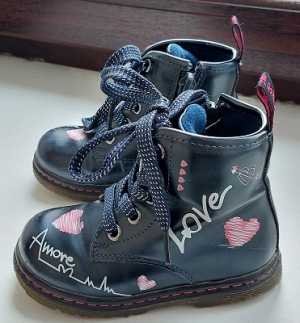 Новые демисезон кожаные ботинки Cherie 25 Италия. Цвет темно темно синий, почти черный с красными сердечками. Привозные.