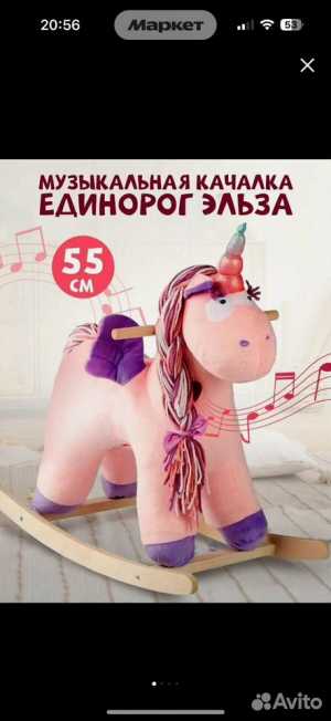 Детская музыкальная мягкая качалка Тутси "Единорог Эльза", (розовый) 10 фраз Состояние отличное