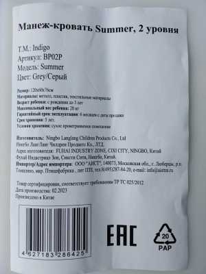Манеж-кровать Indigo BP02P Summer в хорошем состоянии. Размер 120х60х76 см, подходит для ребенка до 3 лет (до 20 кг).