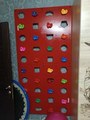 В отличном состоянии детский домашний скалодром метр на два метра. С качественными захватами для рук и опорой для ног.