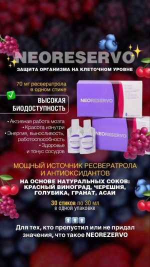 НЕОРЕЗЕРВО - новинка на российском рынке здоровья! Вещество способно снижать риски развития раковых и прочих заболеваний...