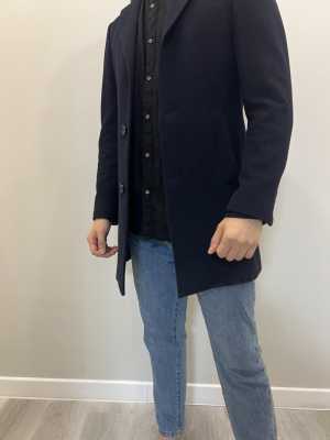 Мужское пальто темно-синего цвета подойдет на осень и весну, размер (S) 46, длина рукава 65, плечи 50, под грудью 50...