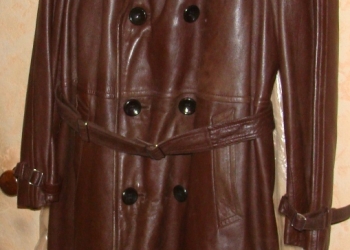 ПАЛЬТО МУЖСКОЕ КОЖАННОЕ С ПОЯСОМ, ЦВЕТ ШОКОЛАДНЫЙ, КЛАССИЧЕСКИЙ СТИЛЬ, РУКАВ РЕГЛАН - 63см, ПОДСТЕЖКА ИЗ ЦЕГЕЙКИ...
