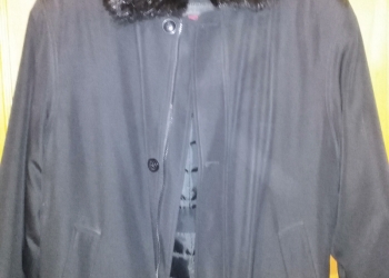 Продам для грузного мужчины приличное драповое черное пальто с меховым воротником, без потёртостей и дыр.