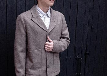 Мужское полупальто ручной работы из натуральной итальянской шерстяной ткани светло-коричневого цвета с мелким узором "рубчик...