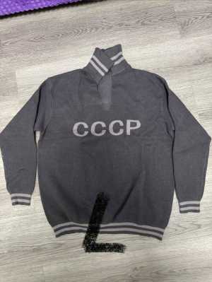Стильный свитер тёмно - серого цвета с лаконичной надписью «СССР» на груди.