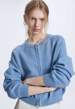Кардиган lime небесного цвета, новый с биркой Укороченный кардиган прямого кроя из смесовой шести. Круглый вырез.
