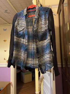 Укороченная рубашка, отличное состояние, в составе небольшой процент шерсти