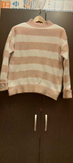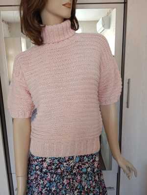 Свитер бледно розового цвета связан из итальянской пряжи в составе меринос, вискоза, шерсть альпаки, акрил.