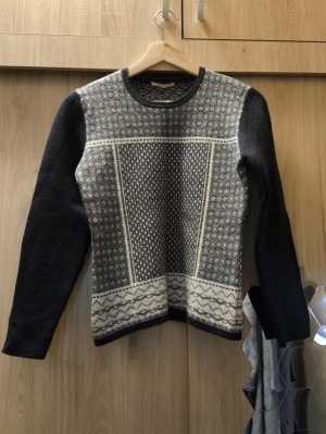 Тёплый и уютный женский свитер шерстяной ,красивый.Синий с белыми вставками делает его универсальным для разных образов.