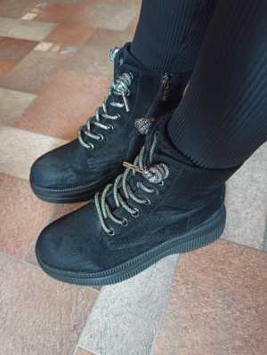Новые замшевые ботинки, размер 36, на молнии. За счёт шнуровки можно регулировать плотность прилегания ботинка к ноге