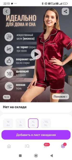 Новая пижама 44 размера, подойдет на 46 отлично, сидит свободно и на шортах стильные размеры по бокам Материал- полиэстер.