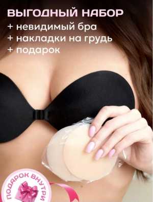 Новый набор: бюстгальтер силиконовый, две накладки на грудь, подарок (резинка для волос). Размер чашки С.
