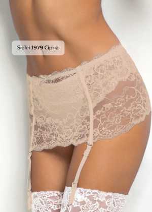 Эротическая юбка синего цвета с кружевным верхом и креплениями для чулок.
