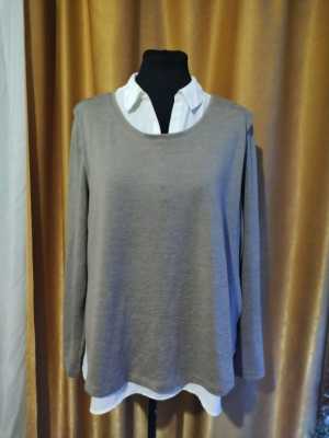 Трикотажная кофточка с эмитацией двухслойности от С&А. Стильный и актуальный крой. Размер 54.