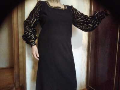 Вечернее платье чёрное ,рукава полупрозрачный бархат (пан бархат)с золотом. Шерсть 100%. Миди.