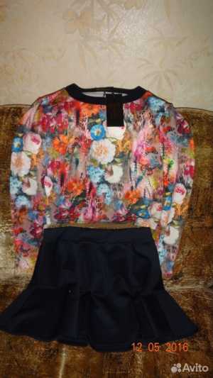 Красивый новый костюм,состоит из цветной кофточки и однотонной юбки,очень приятная мягкая ткань,дополнительные фото по...