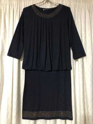 Фото 1-3 Новое платье темно-синее. Испания. Полиэстер. Размер 58 – 60. Длина по спинке 98 см.