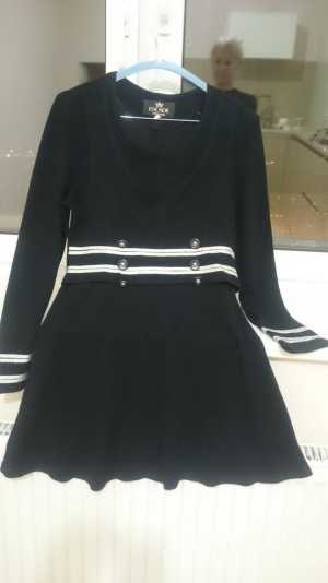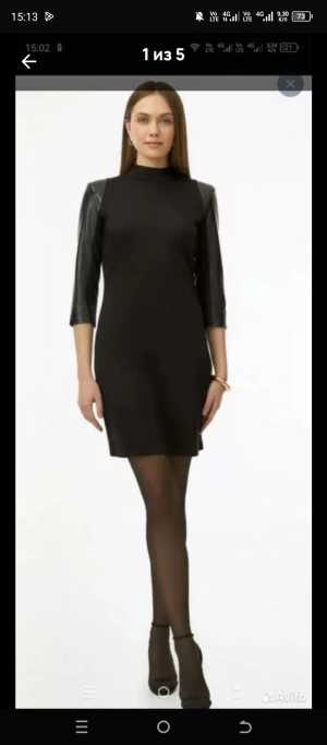Платье черное - мини. Состав вискоза +шерсть+ полиэстер. Длина 82 см, юбка от талии 43 см. Есть подплечники.