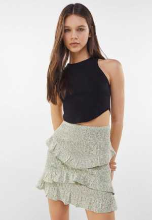 Продам стильную мини-юбку от Bershka в отличном состоянии. Модель выполнена в нежно-зеленом цвете с мелким цветочным принтом.