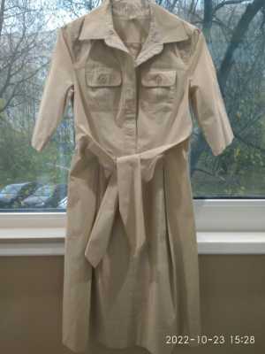 Описание Универсальное платье из тонкой плащёвой эластичной ткани бежего-серого цвета с накладными карманами на груди, на...