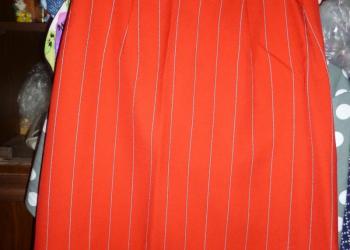 Удобная и практичная женская, красная в узенькую белую полосочку, летняя мини юбка. Сшита в ателье.