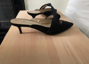 Туфли 37 р-ра, один раз надевали, строгие чисто черного цвета замшевые ,отделаны черными бусинками. На узкую ножку.